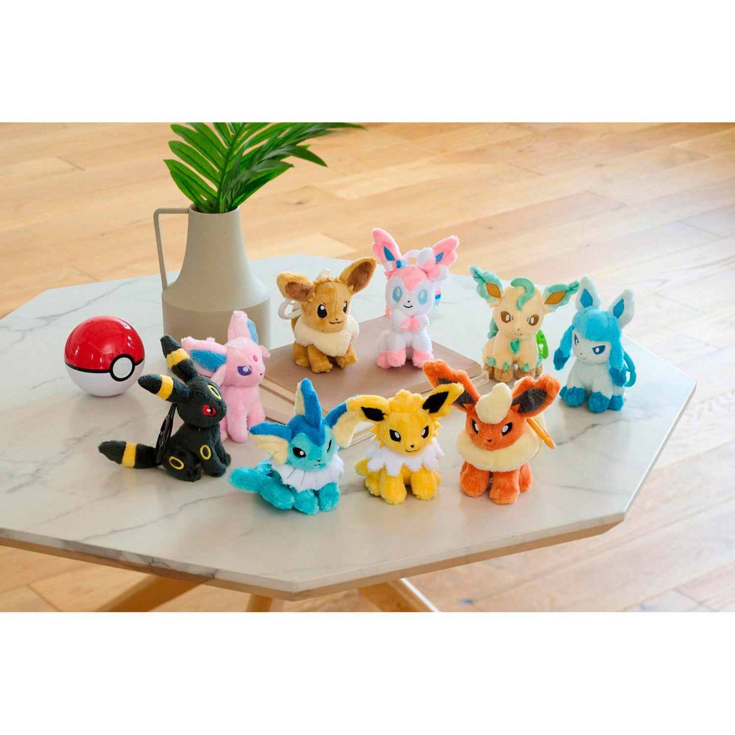 ¡Es la mascota de Flareon! Peluche colgante con mosquetón en forma de Pokébola, ideal para llevar en mochilas, bolsos o llaves.