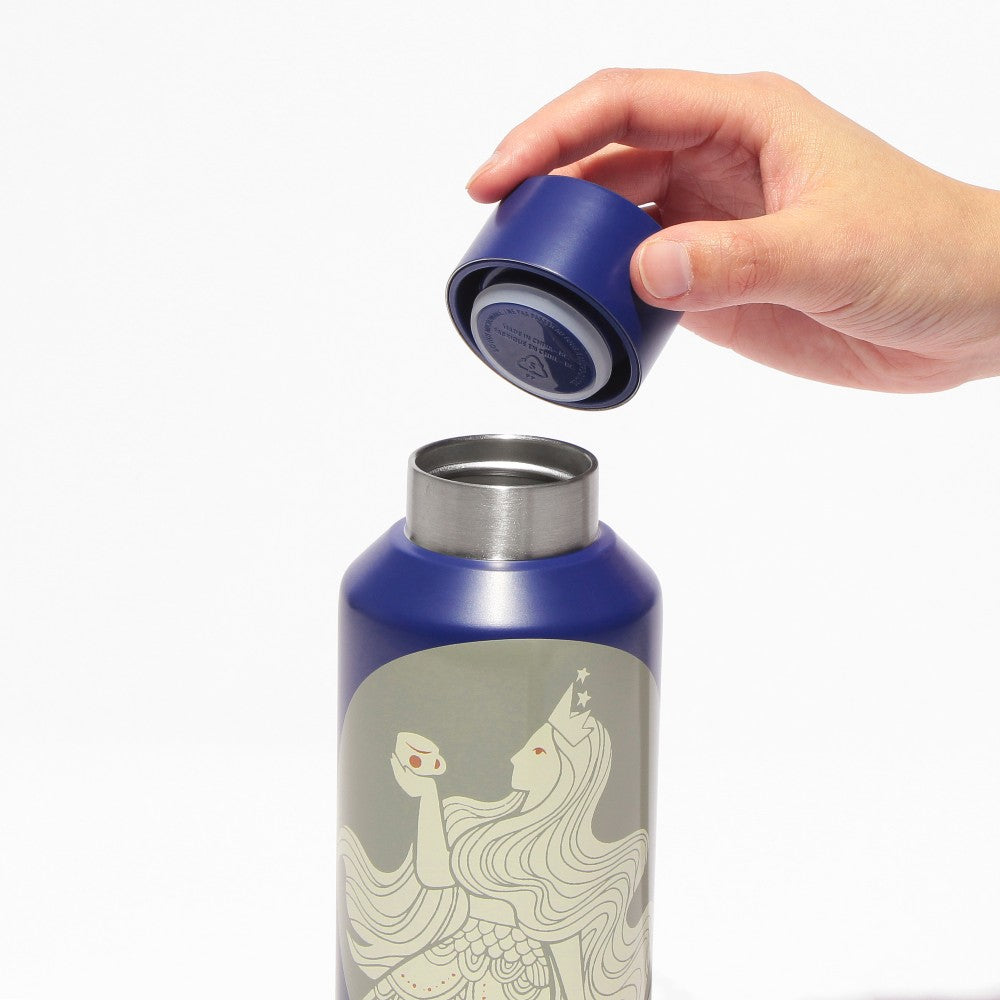 Esta botella de acero inoxidable luce el icónico motivo de "sirena" de Starbucks, reinterpretado por WILDSIDE. Su cuerpo mate tiene un acabado azul intenso. Su sello de vacío de doble pared proporciona un excelente aislamiento para bebidas frías y calientes.